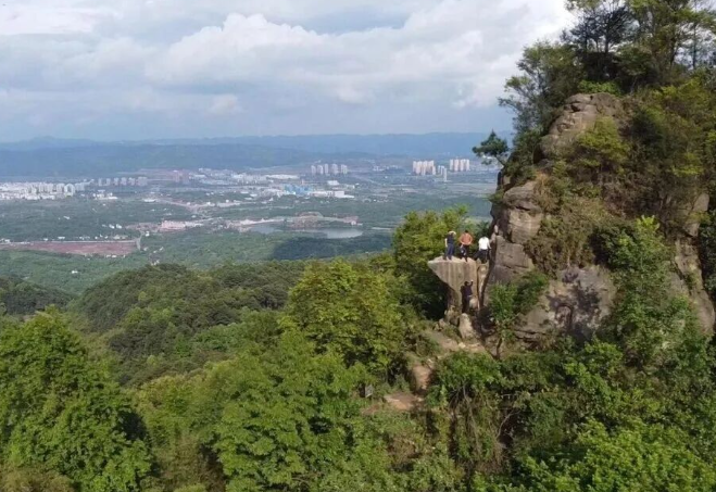 鸡冠石一侧开凿有步道,可以登上鸡冠石,站在石头上能看到璧山和沙坪坝大学城,风景很好。