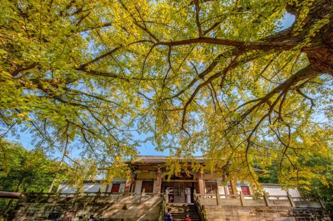 这里的银杏惊艳了无数人的秋天!慧光寺前,两棵约300年树龄的古银杏根茎粗壮,枝繁叶茂金黄色的树叶挂满枝头洒在院落里、台阶石栏和秋千上灿烂明烈,意境超美