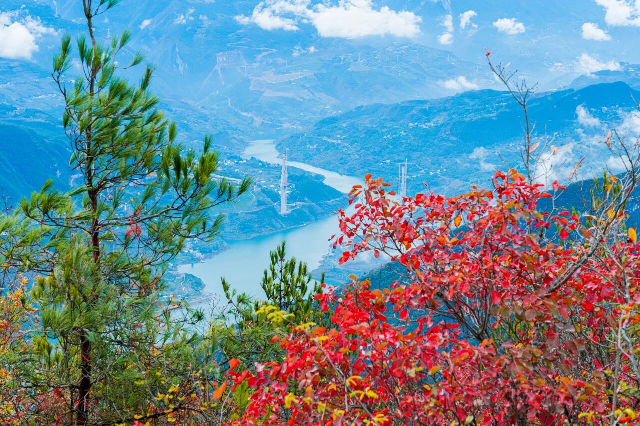 每年十一月至十二月,连绵群山换上了红装,与碧绿的江水交相辉映,构成一副绝美的天然画卷。