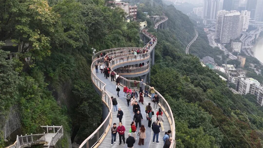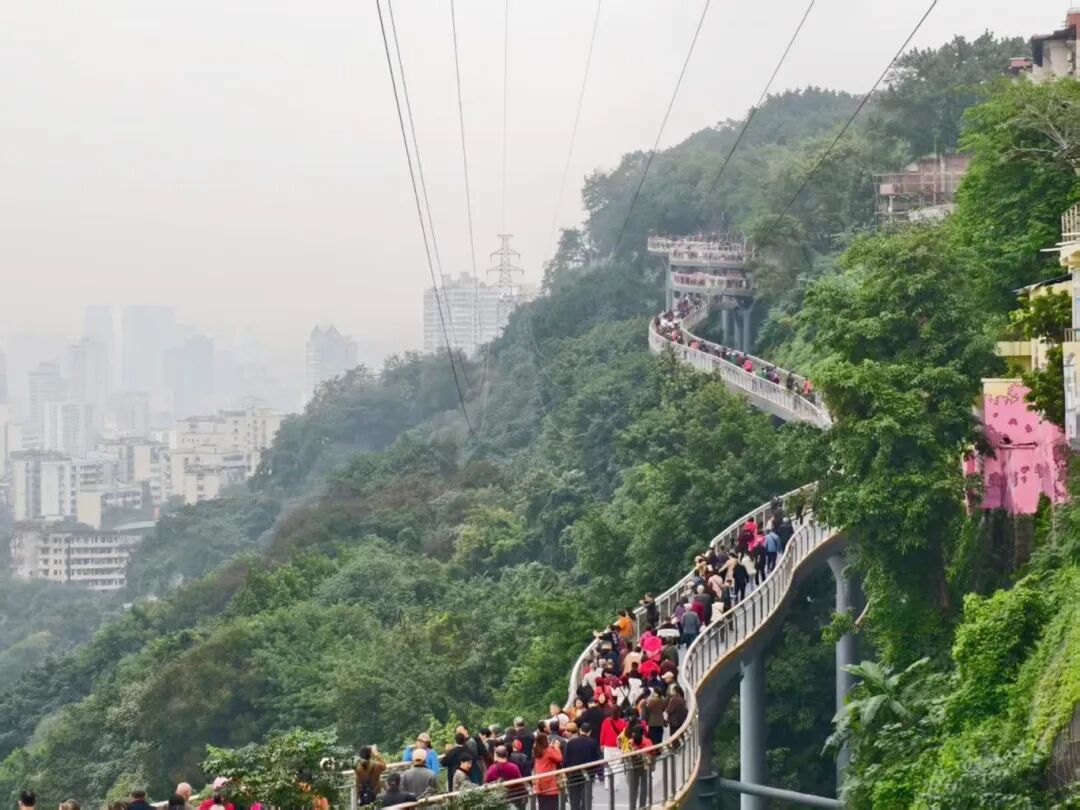 这条全长460米的“崖线飘带”凭借俯瞰嘉陵江及“李子坝单轨穿楼”的独特视角开放首日便人气爆棚