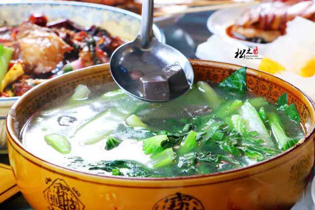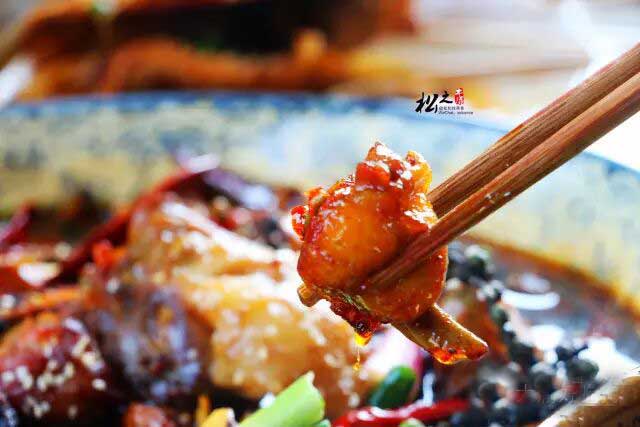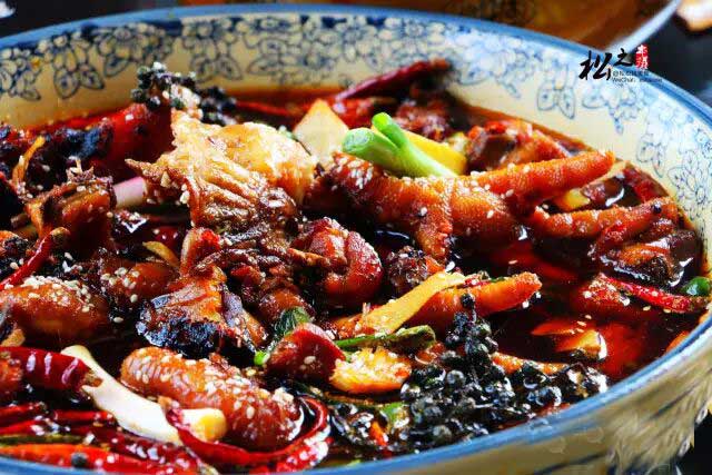 周幺鸡是山庄的一大特色之一 一鸡三吃,周幺鸡、泡椒鸡杂、鸡血翡翠汤 主菜周幺鸡,鸡肉过油的时候恰到好处, 口感耙糯入味略有嚼劲,麻辣中又带回甜,很有特色 不像辣子鸡哪样重口,又不像泉水鸡哪样耙糯稍过 总之,上山必点