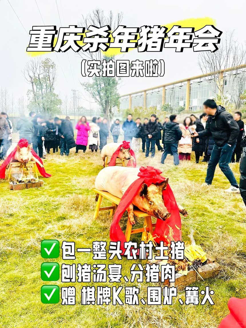 今年我们农庄的杀年猪团建年会活动又来啦! 去年年底超多公司从重庆主城过来,给员工包一头年猪,办年底部门团建活动,开公司年会。