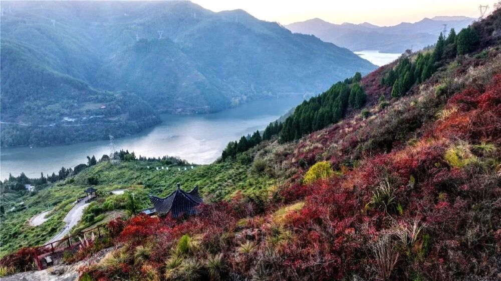 是谁打翻了上帝的调色盘?初冬的云阳高阳镇梨树村正在上演年度色彩大秀!数万株红叶进入“高光时刻”盘山公路变身“红毯大道”彭溪河碧波成了天然反光板一幅绚丽多彩的生态画卷吸引了众多游客前来登山赏叶感受冬日的别样浪漫