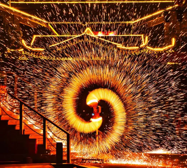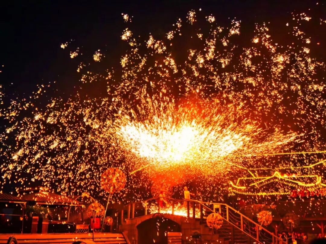 除了打铁花和火壶秀在此还能欣赏到变脸、飞天、不倒翁等多种“非遗”表演让人惊叹不已