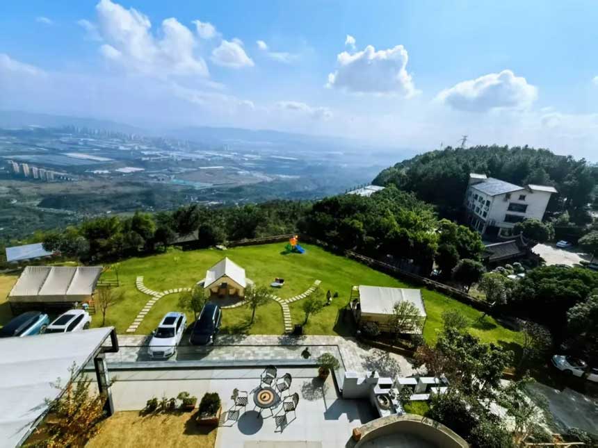 渝北玉峰山悬崖观景顶奢山庄 俯瞰两江新区壮丽城景 超大户外草坪+悬崖观景平台 适合公司团建 聚会 年会 宴席 求婚 BBQ 生日party...