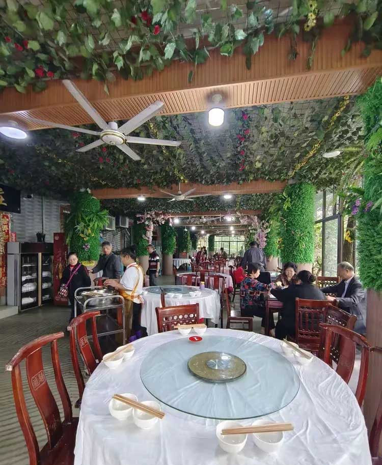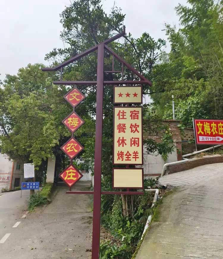 农庄指示牌,左边一公里有玻璃廊桥,再往前走一公里可直接登山至狮子峰。右边四百多米,可达白云道观,出道观后,直接往前走,有许多农庄可选,再往前可达楠竹林间步道和公路旁的楠竹林。缺点:吃得很不错,价格实惠,住宿一般,吃住每人每天100元,交通不是很方便,农庄可联系面包车(每车10人)到轨道交通北碚站接送,每人价格20元,到农庄有一百米30度的陡坡。预约:17323964384