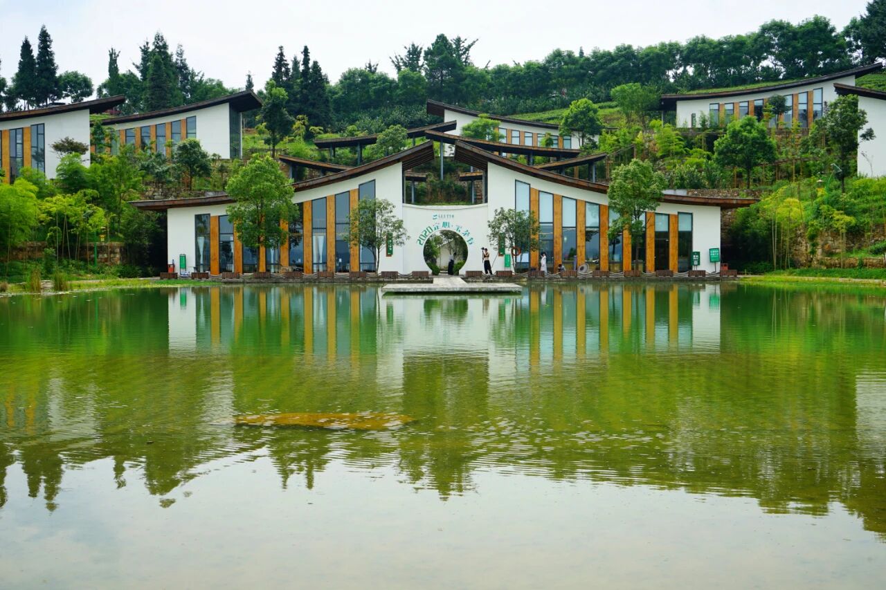 白象山在何处?重庆巴南也。从惠民街道到东永,从高速到乡道,从村路到山路。 穿过乡镇,穿过村庄,穿过森林,一大片茶场扑面而来。目的地定心茶园到了。 视野开阔,远山连绵,云栖山顶,尽在脚下。近处松风阵阵,香樟玉立,茶园葱葱。 一座座房子坐落在山腰,竹抱,荷依,鱼嬉,人娇。