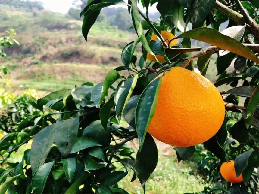 每年到这个时候 正是吃柑子的好时节 黄金林村产出的爱媛橙个头大 色泽金黄油亮,汁多皮薄 甜度与果酸适中 结出来的柑橙果肉细腻多汁 300亩果园的果子让你摘个够