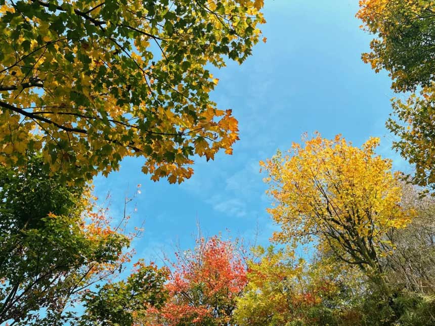 景区内的瞭望塔、观奇山等 都是秋冬观赏彩林的最佳地点 可将森林美景尽收眼底