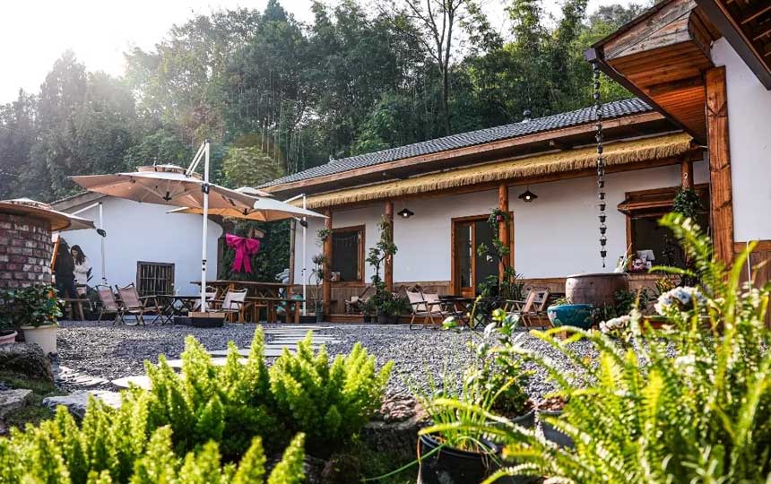 午后阳光洒在小院 你可以窝在藤椅里放松发呆 也能和朋友在绿植环绕下谈心聊天 偷得浮生半日闲