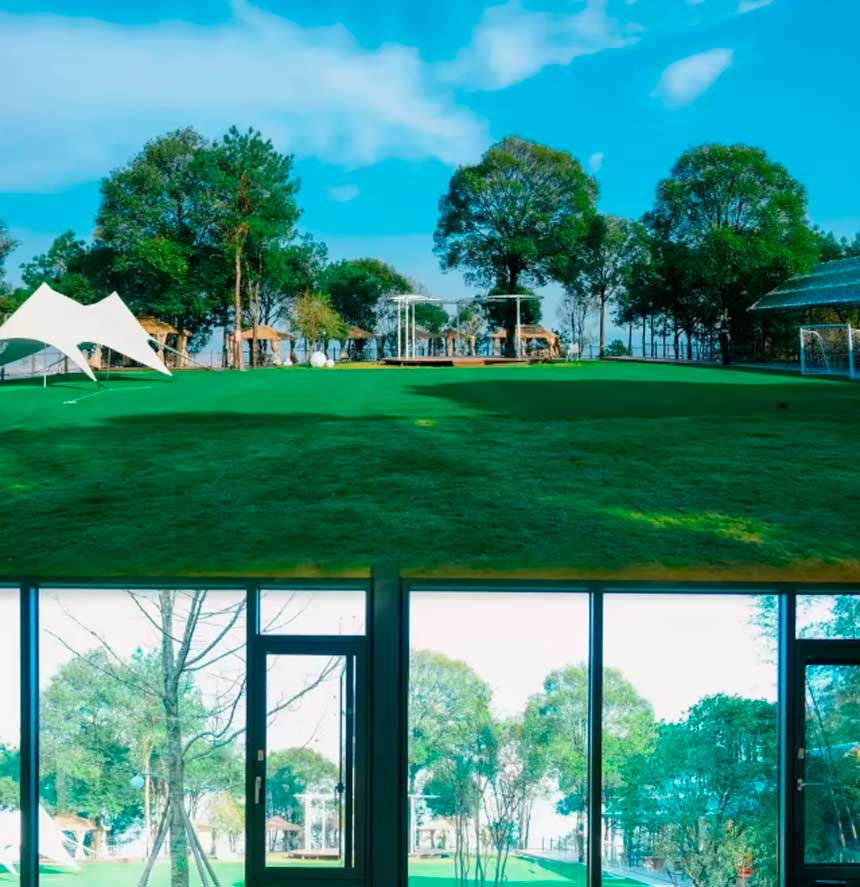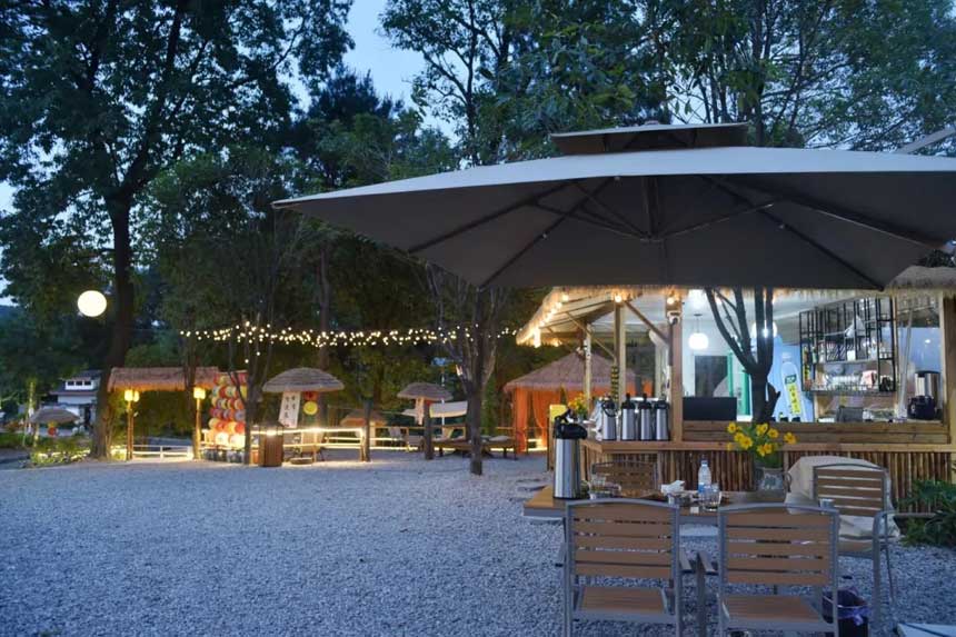 草甸铺展如绿绒,防水布营房列成方阵。淋浴间白汽混着松香,洗衣房烘干机彻夜低吟。酒吧台咖啡机嘶嘶吐纳。暮色漫过充电桩群,商务舱投影光束刺破帐帘,合同条款竟与松涛撞个满怀。这方天地,早为尘世倦客备妥所有抽身与黏连的可能,星河垂落时,每顶帐篷都亮成独立的星球。
