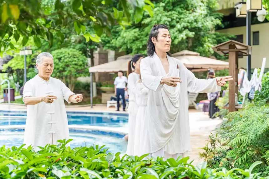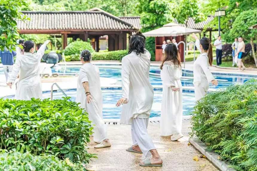 在清新的晨雾中舒展筋骨,让呼吸与自然同频,为一整天的活力注入能量。
