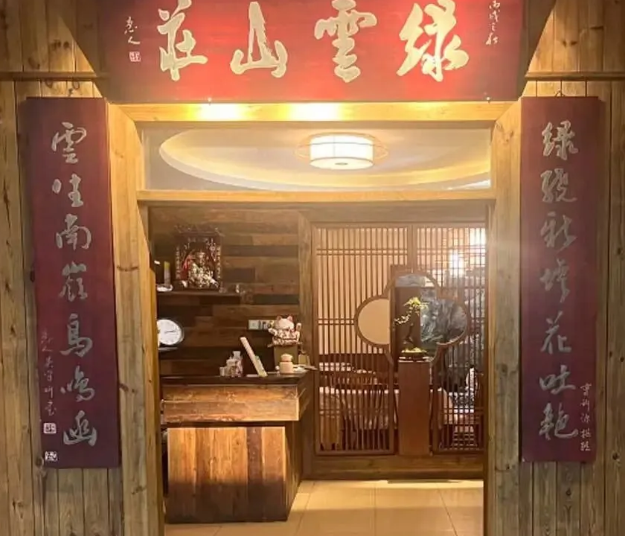 大小宴会厅共有3个包房2个,可以同时容纳300人就餐。供应各类农家特色菜品有机蔬菜,本山庄泉水鸡更是获得贵州卫视美食大篷车节目组一致好评。重庆交通广播93.8美食节目的推荐。本山庄绿植环抱四季飘香绿化面积约6000平米。春有杜鹃红染,兰花飘香。夏有柳树成阴,白兰飘香。秋有金桂飘香,红枫红艳。冬有腊梅飘香青山翠竹。禄云山庄基础设施以及配套功能日益完善,产业规模不断扩大,休闲方式日益丰富,旅游接待能力不断增强,服务质量不断提升。禄云山庄目前已形成了能为城乡消费者提供不同类型的农家乐休闲旅游活动,包括欣赏乡野自然景观,品尝农家特色饭菜,参与农事趣味活动,体验农民淳朴生活,领略农村民俗风情等活动,有明显社会效益,经济效益和生态效益。禄云山庄交通方便,公交车384路直接到南山植物园终点站下车我们有专车接送到本山庄。南岸区禄云山庄度假村全体员工热烈欢迎你的到来.