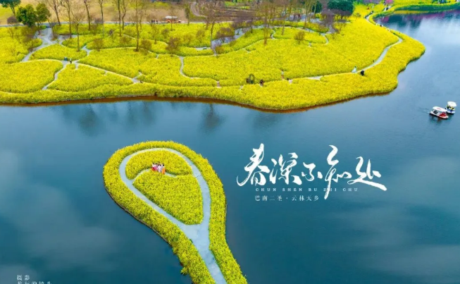 云林天乡是 巴南春日花海的集大成者 拥有300亩油菜花田 同时搭配樱花、梅花 红枫等多种花卉 形成层次丰富 色彩斑斓的春日画卷