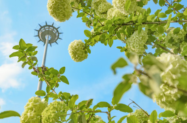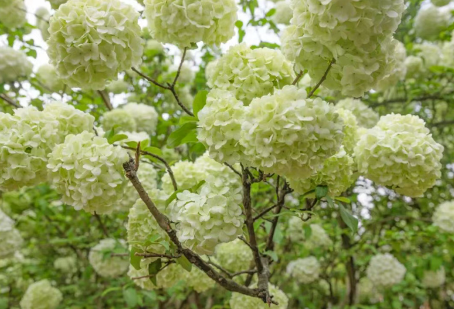 花开正当时,解锁春日浪漫。3月下旬的木绣球正处初绽清新期,嫩绿色花团层层叠叠,像被春日晕染的翡翠绒球;待到4月上旬将迎来纯白盛放期,花球满树如云朵似雪,阳光一照,通透又温柔。500余株花木错落成林,漫步其间,风携花香掠过发梢,连空气都透着清甜。