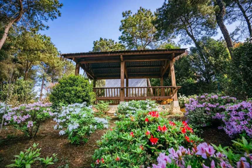 漫步于密林之下、花丛之中,清凉的山风徐徐吹过,送来阵阵隐约的清香。
