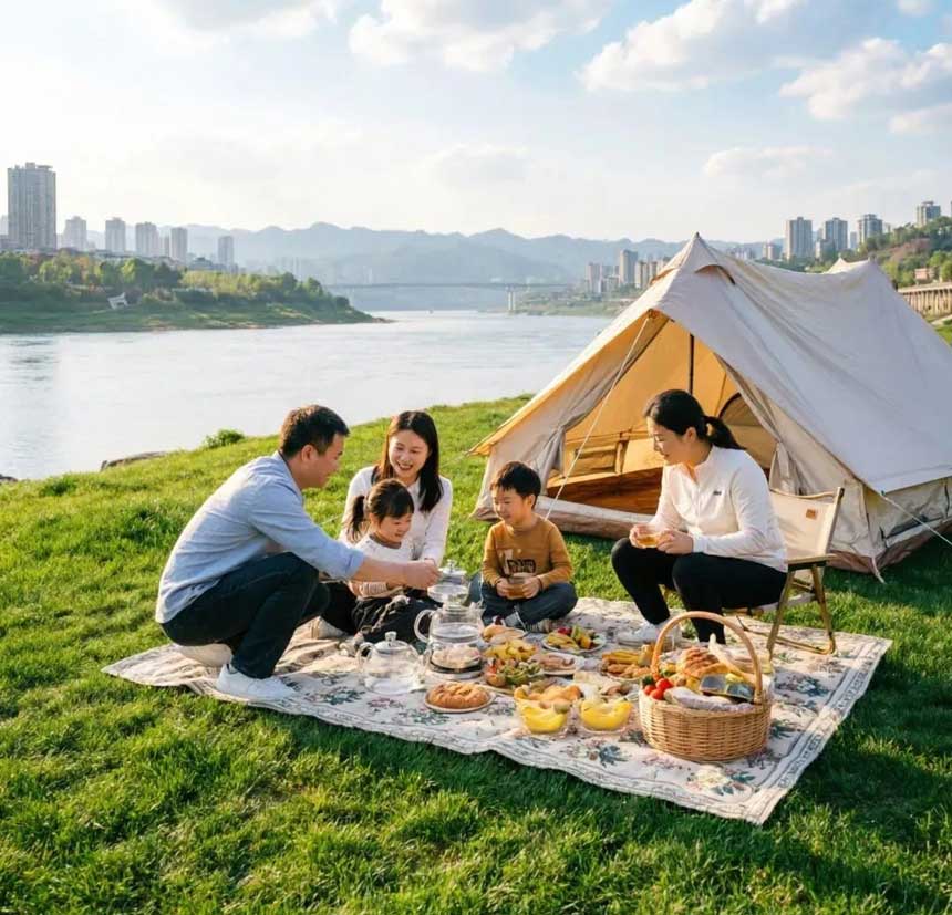 关键词:江边露营、亲水、免费、遛娃