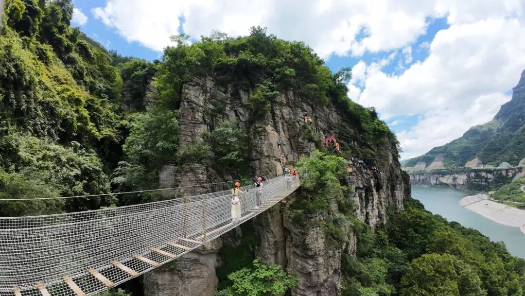 依托陡峭崖壁打造的飞拉达,三条难度线路任选,亲子、新手、资深玩家都能找到适配玩法。专业装备+教练全程护航,攀爬途中,脚下是碧绿湖水,身旁是悬崖峭壁,每一步都充满刺激与成就感,解锁“飞岩走壁”的高光时刻。