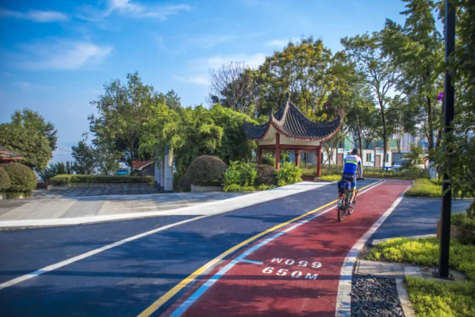 这条绿道被誉为“崖线上的有氧跑道”,一侧是陡峭崖壁,一侧俯瞰壮阔江景,骑行或步行其中,仿佛在半空徜徉。