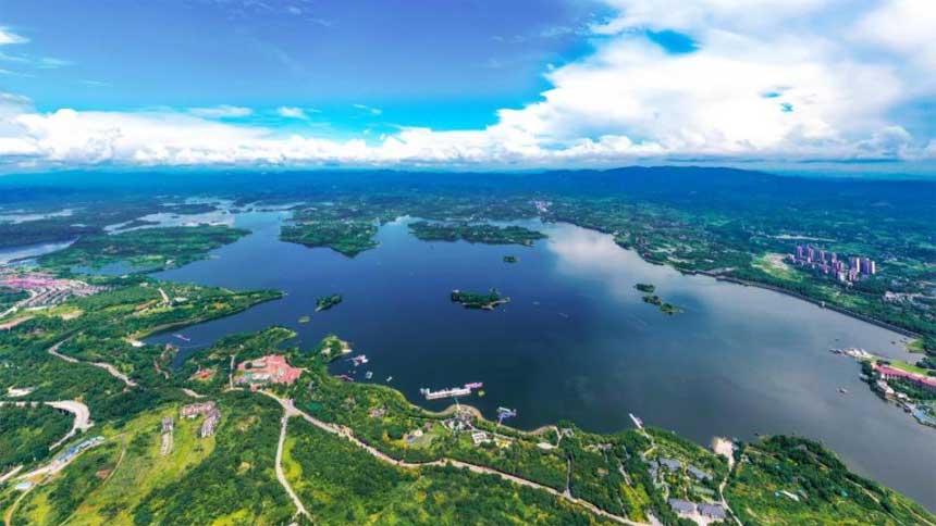 西南大地,龙溪河畔,65平方公里的重庆市长寿区长寿湖如一块巨型翡翠镶嵌在群山之间。