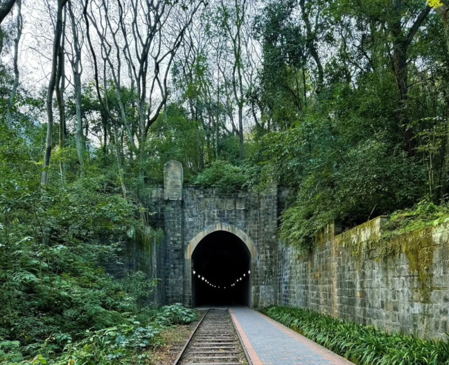 过沙磁巷 很快便步行至了小铁路步道 打卡起点处 名字独特的渣滓洞隧道 走进隧道 头顶上方是梦幻的“星空顶”