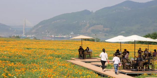 带上相机或手机 随手一拍就是大片 建议穿浅色衣服 站在花海中的小径上 以江水远山为背景 分分钟刷爆朋友圈