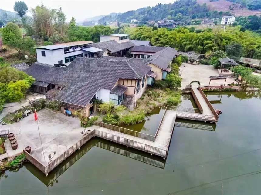 跟着导航的提示,一路向东泉方向,渐渐离开拥堵嘈杂的城市道路,钻进山中。山路还算平坦宽敞,没有想象中那样狭小颠簸,清新的空气让人心情明亮起来。五布镇上有一条五布河,小河四周是一片片竹林,被这五布河和竹林环绕包裹起来的这一方大大的天地,就是“五斗丘小院”。