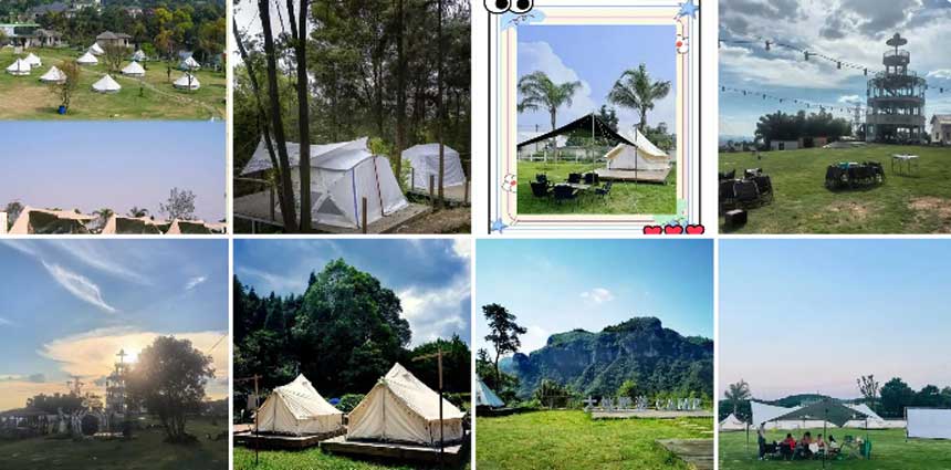位于花岛湖畔的「天空之城」是重庆热门轻奢露营地,拥有百亩草坪、玻璃观景楼、乌篷船下午茶和飞越丛林高空索道,适合家庭聚会、团建或情侣约会。