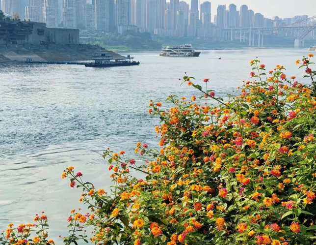 赏花+徒步何需远行 主城长江边 藏着一条3公里长的 浪漫花路 月见草、苦楝花、马缨丹 树状月季等争相怒放