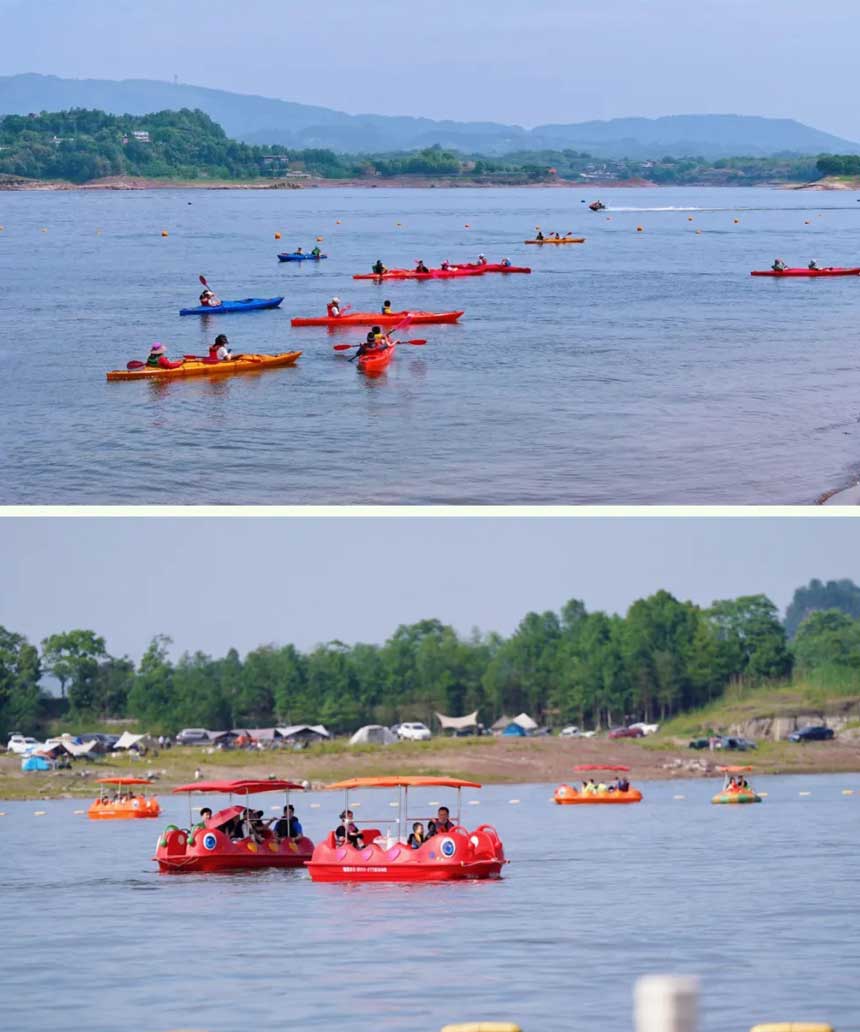 挥桨入水,乘风而行 乘皮划艇,与孩子并肩划开湖面 或者感受喷射飞艇、摩托艇的刺激与尖叫 这一刻,湖光潋滟,欢声四起 世界只剩彼此眼中的笑意