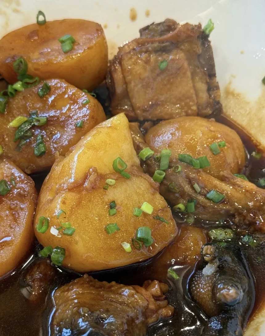 这家店的必吃榜TOP1不是花椒鸡,而是这一盘土豆烧鸡!!!糯香暴击,怎么可以做得这么好吃!!!巨型土豆块+大块鸡肉,鸡皮入口软糯粘嘴,土豆吸满了酱汁,糯到犯规的碳水炸弹,秘制酱料浓郁不腻,微微的甜味刚刚好!!酱香口味也很适合外地朋友!