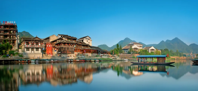 洪安边城,处在重庆、贵州、湖南的交界处,这里是刘邓大军解放大西南第一站,也是沈从文笔下《边城》的原型地。在洪安不仅可体验渝湘黔三省文化,也可一锅尝三省美食(洪安腌菜鱼),打卡网红边城火锅。 五一假期,景区特别推出“荟萃边城·渝见洪安”文旅活动,《遇见边城》情景剧、《挺进大西南》舞台剧、非遗绝技展演等轮番上演;“不夜边城 秀山有戏”沉浸式演艺盛大启幕,一场融合光影科技与民俗风情的盛宴在此徐徐展开。