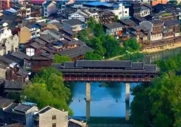 典型的少数民族聚居地,拥有独特的人文风貌,屋顶有飞檐,侧壁有花窗,青灰墙上有勾缝。蜿蜒起伏的古边城古城墙,映着红色历史的脉络。