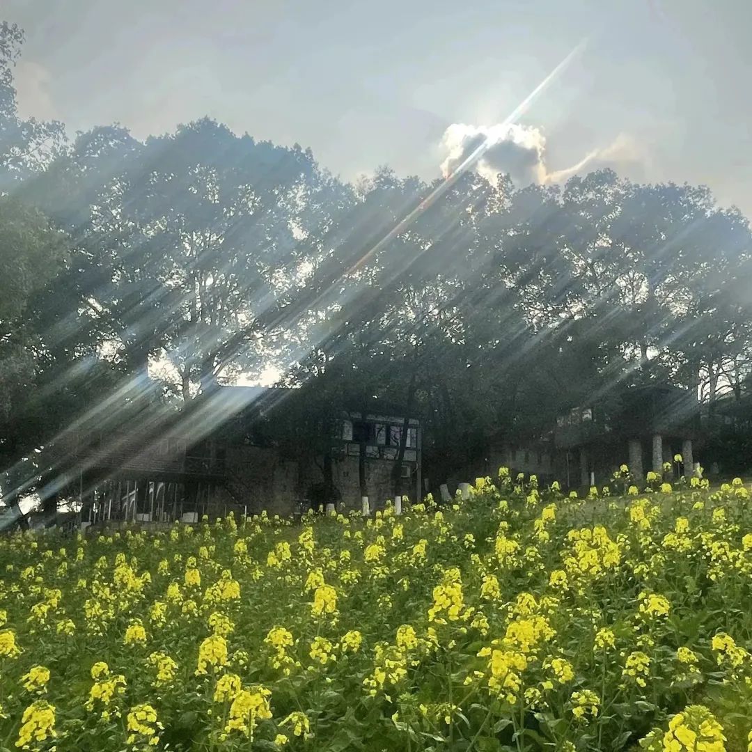 在桃花园的一旁,油菜花顶住了压力,这片金黄色的海洋,同样美得不像话。