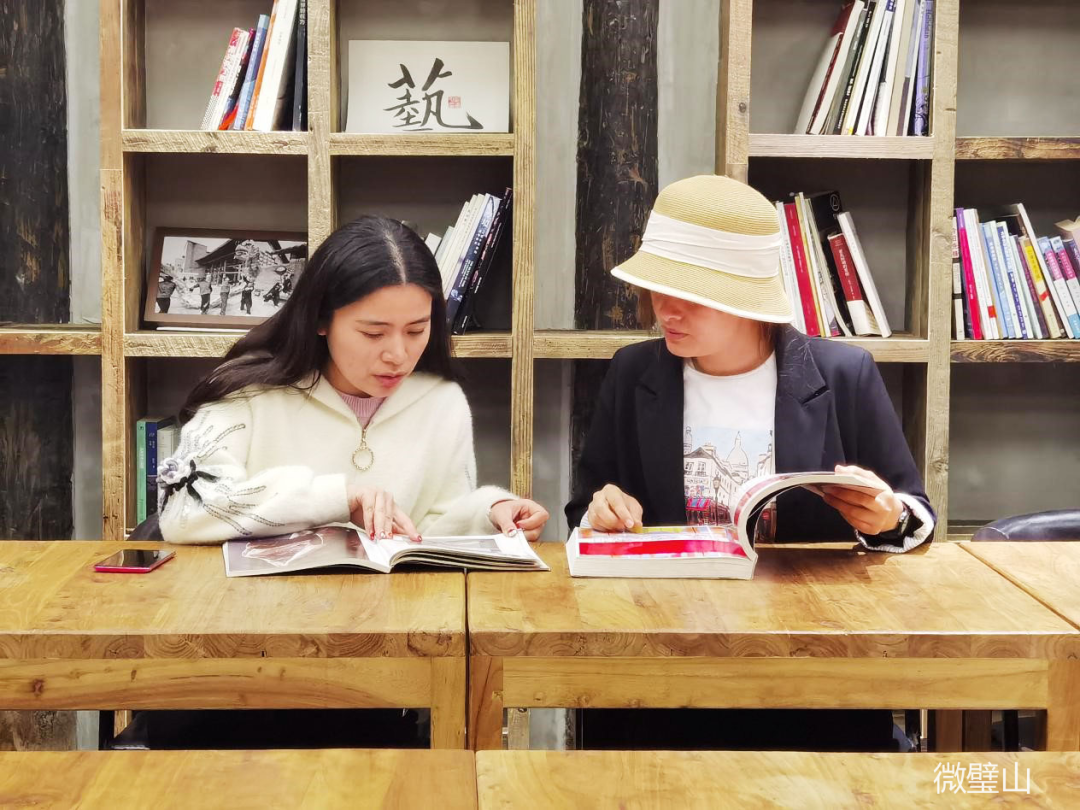 院落里有一处书屋,摆放着各种书籍,雕塑的、绘画的、文学的,落座其间感受一场艺术的熏陶。一看一听,一书一吟,品出一份悠闲自得。