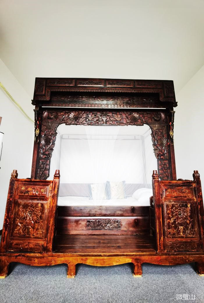 踩进了民宿老房子的斑驳砖墙和木窗棂,古朴雅致的木床,精细绝美的雕花,已难在城市窥见一二,民宿老板遍寻坊间才找到的孤品,完全不同于其他民宿的居住体验,历史与现代的交融都沉浸在了这一方小小的天地中。