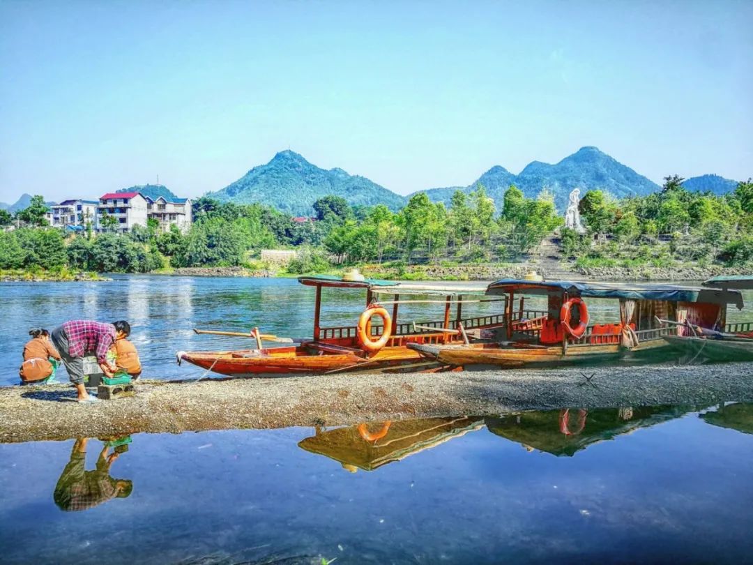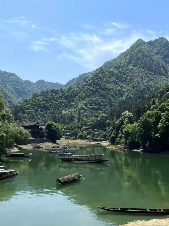 想要去山寨里需要坐船。一路上可以乘船观景,看着青山绿水,享受此刻的宁静。