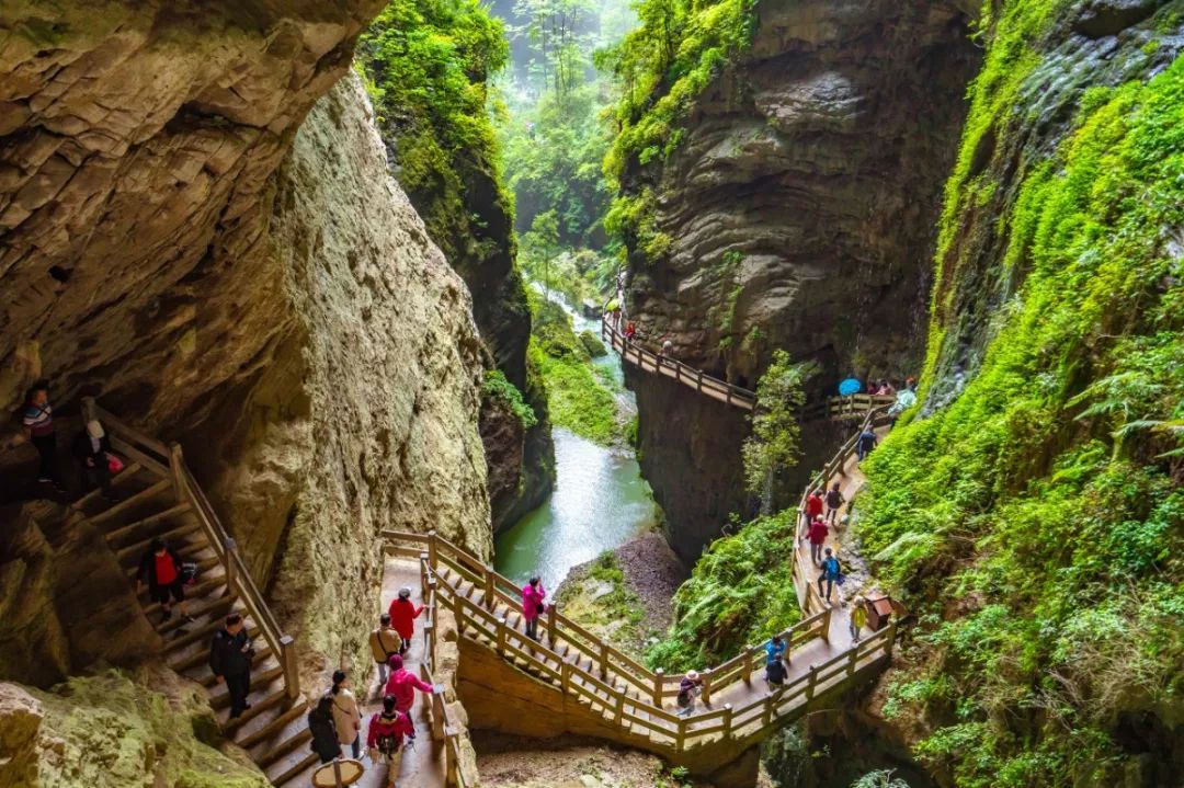 可以说是重庆人最为熟悉的避暑胜地,溪流、湖泊、瀑布点染于苍山绿树之间,丹霞地貌丰富其色彩,盛夏时节这里的气温在22℃—25℃之间,清凉舒适。