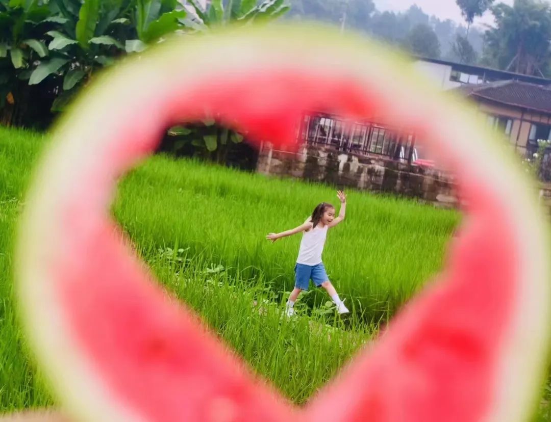 西瓜不仅有解暑的技能,它还能当稻田里的装饰物呢!西瓜圆圆的,拿在手上,站在稻田的小路上,咔嚓来一张,是不是很有乡野气息~