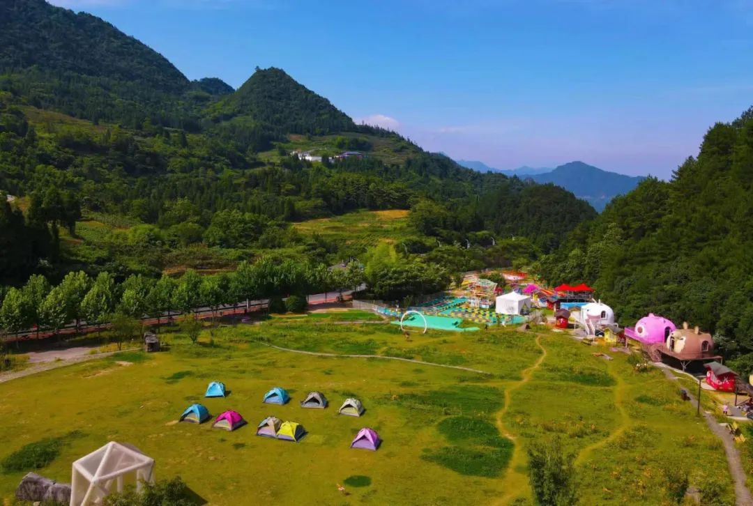 黑山谷露营基地位于黑山镇北门村占地约20000平方米海拔1098米夏季平均气温23℃负氧离子浓度高达1.2万个/立方厘米是名副其实的养生度假胜地
