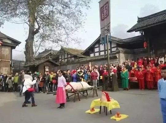 金刀峡“猪羊鼎”年味民俗文化系列活动主会场设置在偏岩古镇由于古镇上的百姓一直认为养猪是家庭富裕的象征所以祭祀猪神、游街祈福已经成为偏岩古镇独特的民俗文化之一