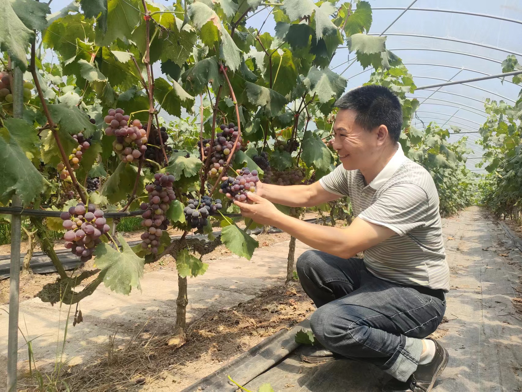 ▲罗泽洪查看葡萄长势。(受访者供图)