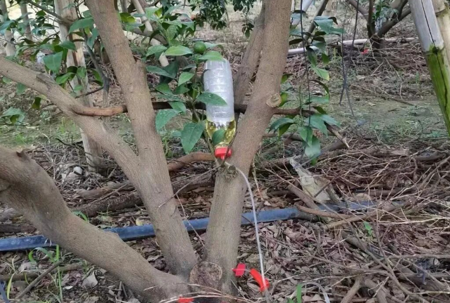 不过,由于柑桔黄龙病困扰了柑桔种植数十年,一始终找不到较为有效的治疗方法,所以在种植实践中一直有人在探寻和摸索,尝试突破柑桔黄龙病的防治方法。“打吊瓶”是近几年民间流行起来的一种土办法,效果与可行性褒贬不一,输液使用的药剂也是参差不一,各有不同,还在不断有人在做更新尝试。据省外一些读者说,他们也在使用这种方法,效果还不错,但是信息是否真实,还有待考证。
