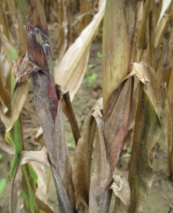 该病主要发生于玉米生长后期,重点危害植株近地表的叶鞘、茎秆,严重时可侵染果穗。