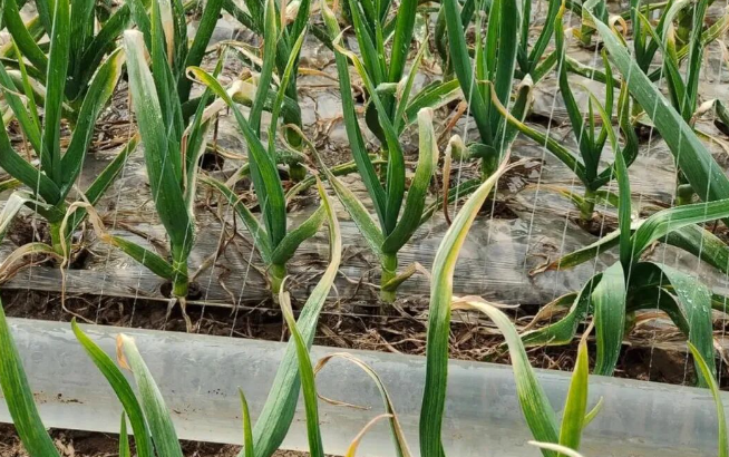 有些地块播种早,冬前积温高,蒜苗长得又高又绿,叶片宽大,茎秆粗壮。这种苗子看起来健康,实际上已经提前消耗了大量养分储备。这时候如果再追尿素,等于火上浇油。因为氮素会进一步刺激地上部分疯长,叶片徒长,茎秆变软,抗寒抗病能力反而下降。等到气温波动或者遭遇倒春寒,这类苗最容易倒伏、冻伤。而且旺长之后,地下鳞茎发育会被抑制,最终影响蒜头膨大。所以,看到蒜苗颜色深绿、株高超过15厘米、叶片挺立且数量多于5片,就说明营养充足,不需要额外补氮。
