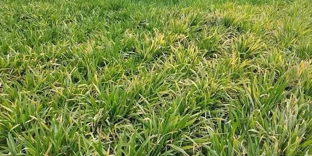 玉米秸秆还田后,秸秆腐熟会消耗土壤氮素,若底肥氮肥不足,易与麦苗争氮引发发黄;加之整地粗放、播后未镇压,浇水塌墒后易出现麦苗悬根,表现为浇水前正常、浇水后发黄。对策:秸秆还田时增施氮肥,播前提前造墒,播种后及时镇压,避免悬根伤苗。及时喷施小麦营养套餐或氨基寡糖素、芸苔素内酯等生长调节剂。
