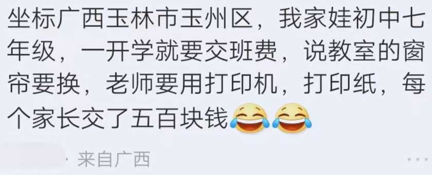 但是近几年网上却出现了另外一种声音,越来越多的家长发现,虽然孩子上学不用交学费了,但却冒出了很多其他的费用,每学期依然要给学校交很多钱。