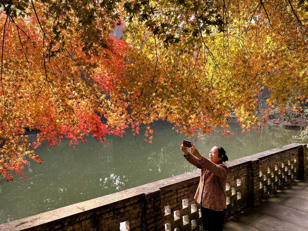 慢城处处枫叶红榉叶黄在阳光照耀下迷人的色彩把慢城打扮得格外美丽吸引不少游客前往打卡