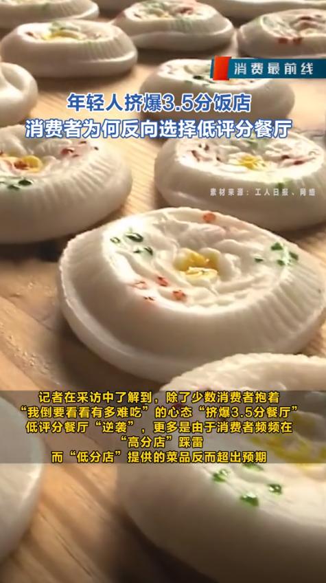 有时候按照评分去找,吃了之后觉得味道一般,有些评分低的餐厅反而有惊喜。慢慢的,她就开始留意评分低的餐厅里的消费者,正在增加。近年来,年轻人报复性挤爆3.5分餐厅,评分低的餐厅可能更好吃,等话题屡屡登上社交平台热搜。