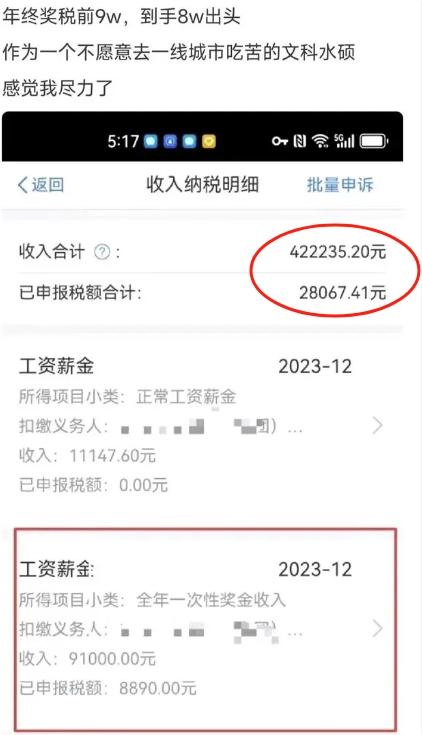通过网友的晒图发现,国企的年终奖最给力。尤其是两油一电和烟草的年终奖,几乎都达到了6位数,比很多人一年的工资还高。难怪应届生现在不再热衷于应聘互联网大厂,而是对国企和央企情有独钟。